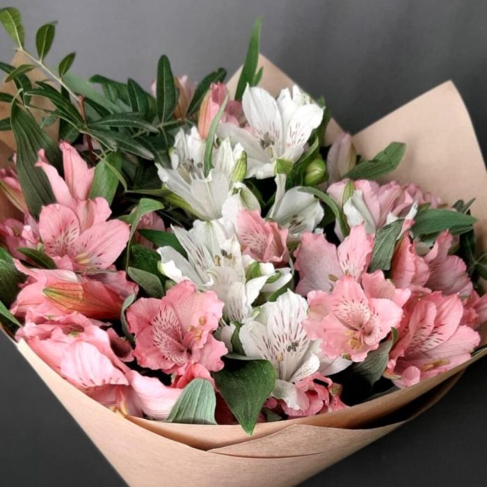 Букет бело-розовых альстромерий