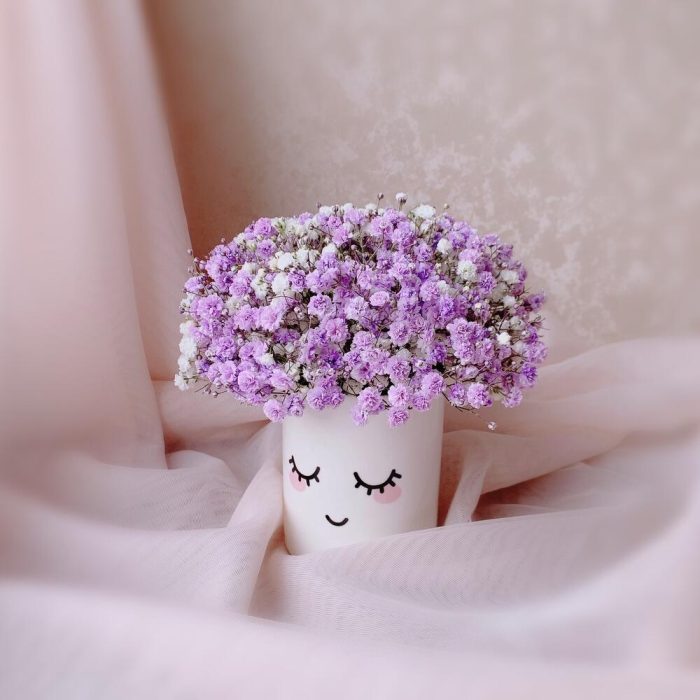 Очаровательная композиция из изысканных свежих цветов.Наполнена множеством соцветий белой и фиолетовой гипсофилы. Собрана в милом кашпо из керамики Композиция из гипсофилы – необычный подарок, который удивит своей невероятной стойкостью, при правильном и простом уходе.❤️ Ставить композицию в прохладном месте, избегая отопительных приборов и прямых солнечных лучей. ❤️ Подливать немного воды в серединку.Гипсофила не вянет, а становится сухоцветом, сохраняя свой вид. Поэтому композиция продолжит радовать ещё очень долго!Почему выбирают нас? – Работаем на качество. – Бережно упакуем в транспортировочную пленку, чтобы защитить во время доставки от любых погодных условий. – Приложим инструкцию, как правильно ухаживать за цветамиСохраняйте товар в подборках, чтобы не потерять