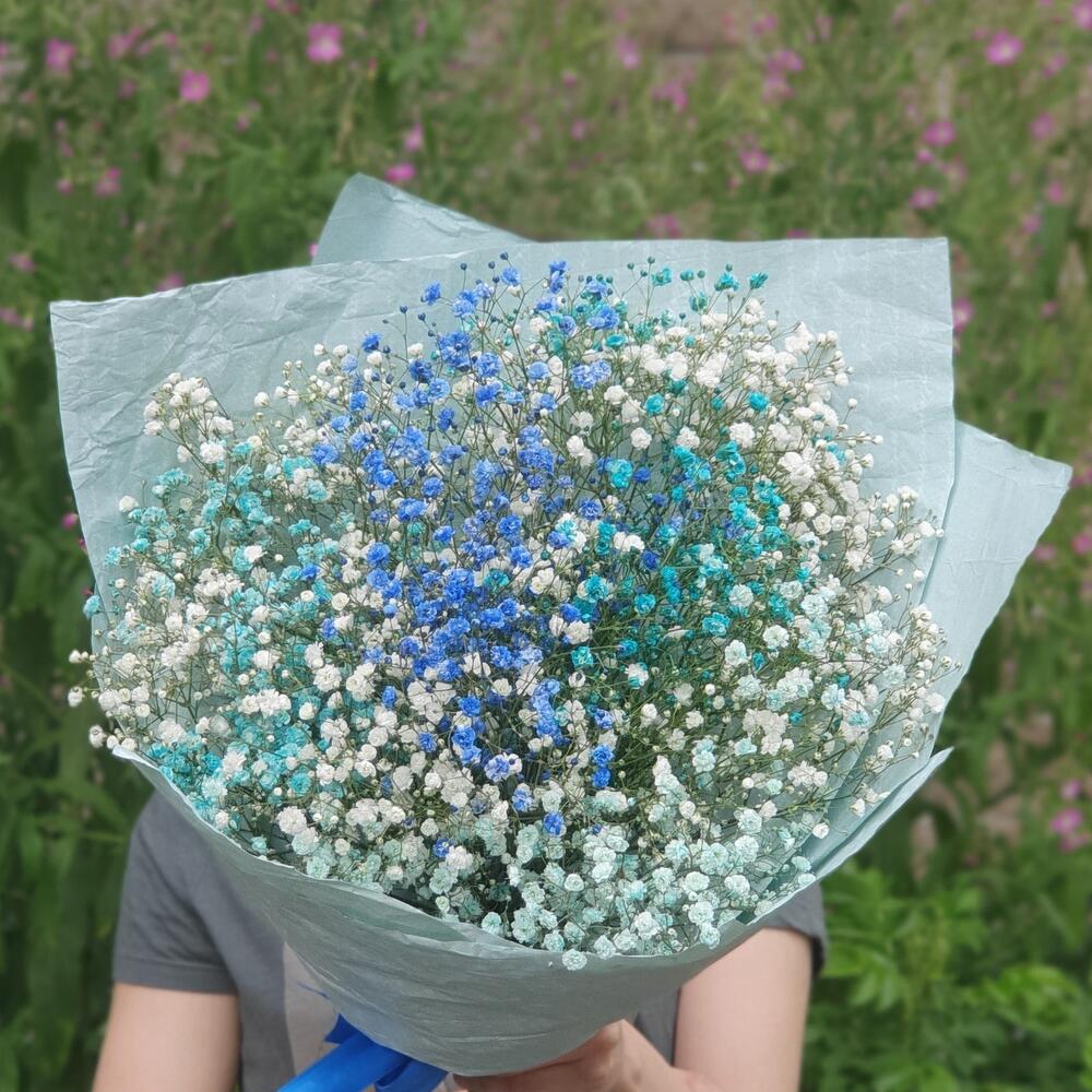 Гипсофила – 7 шт.мятый крафт – 1 шт.Лента атласная – 1 шт.