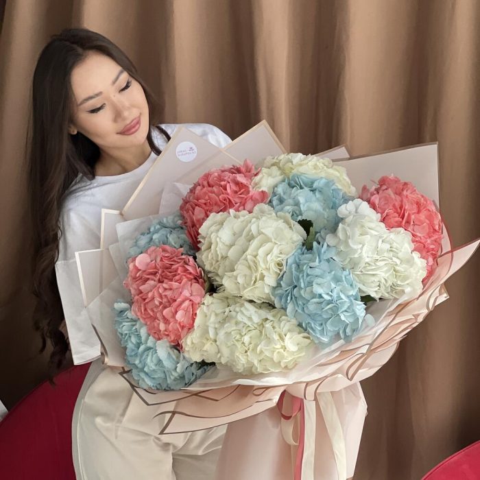 Гвоздики, Гортензии, Кустовые розы, Лизиантусы, Пионовидные розы, Розы