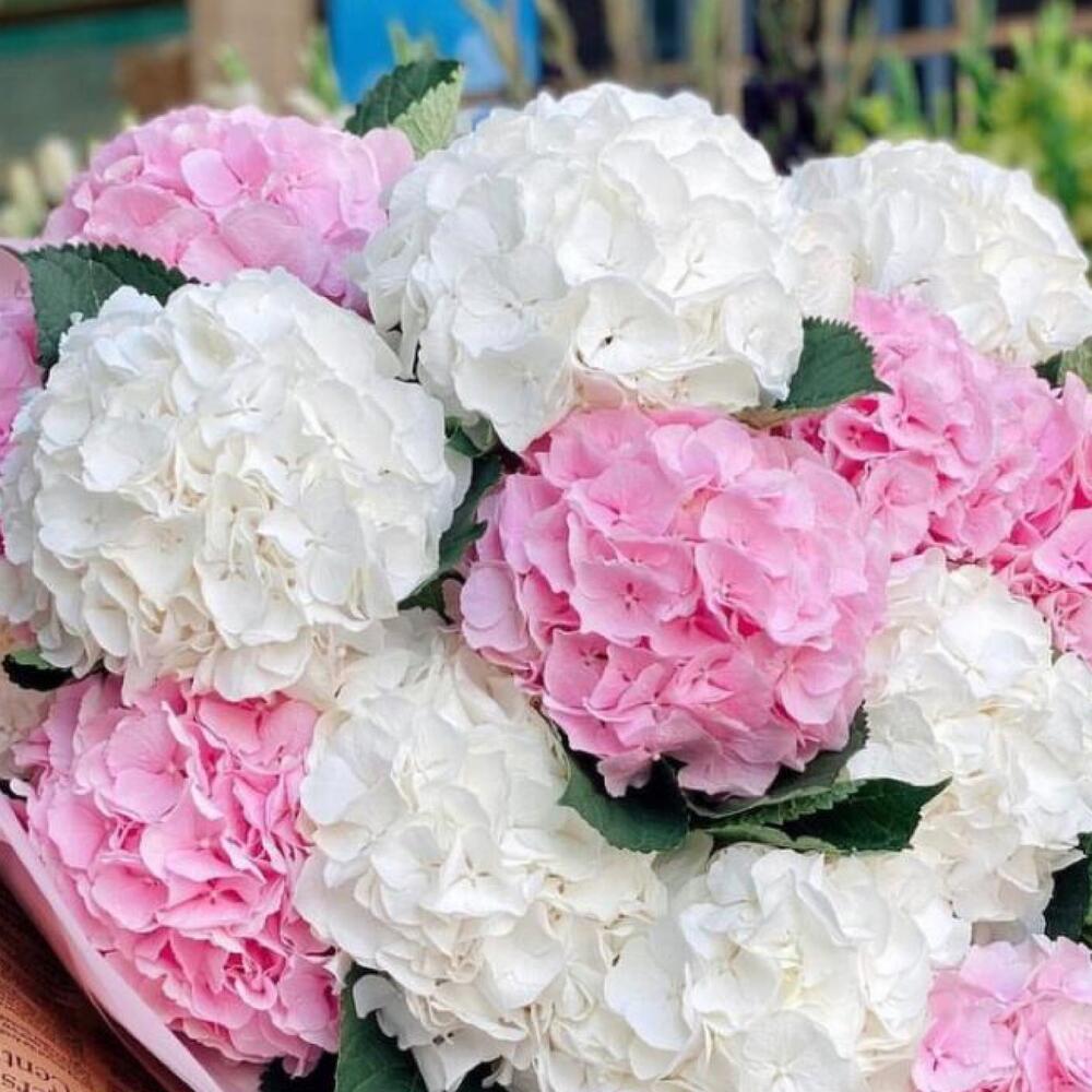 Гортензия розовая – 8 шт.Гортензия белая – 9 шт.Упаковка дизайнерская – 2 шт.Лента атласная – 2 шт.Открыточка с вашими пожеланиями – 1 шт.хорошее настроение – 100 шт.инструкция по уходу за цветами – 1 шт.коробка переноска – 1 шт.Кризал – 1 шт.