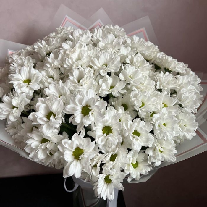 кустовая хризантема ромашка – 13 шт.декоративная упаковка – 1 шт.Атласная лента – 1 шт.