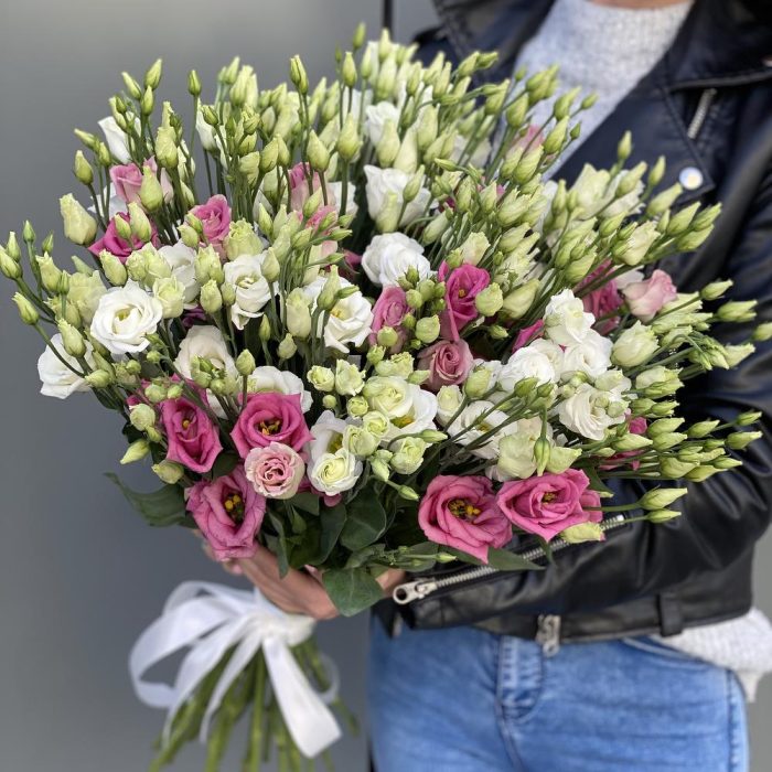 Эустома – 29 шт. Оформление атласная лента – 1 шт.