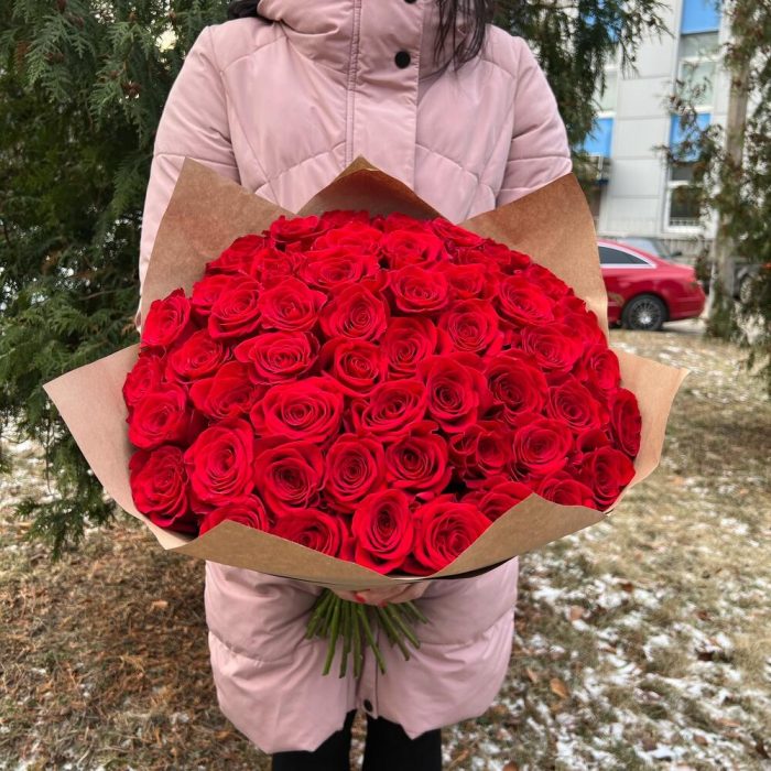 Роза фридом 60 см – 51 шт.Крафт упаковка – 3 шт.