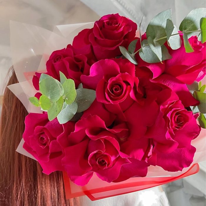 Роза французская – 7 шт.Эвкалипт – 1 шт.Упаковка дизайнерская – 2 шт.Лента – 1 шт.