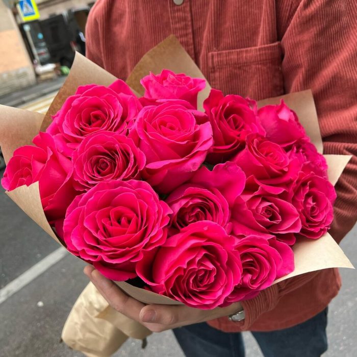 Букет из 15 ярко-розовых ароматных роз