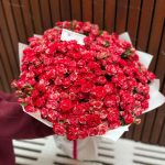 Букет из 59 кустовых роз в стильной упаковке “Пламенное приветствие”