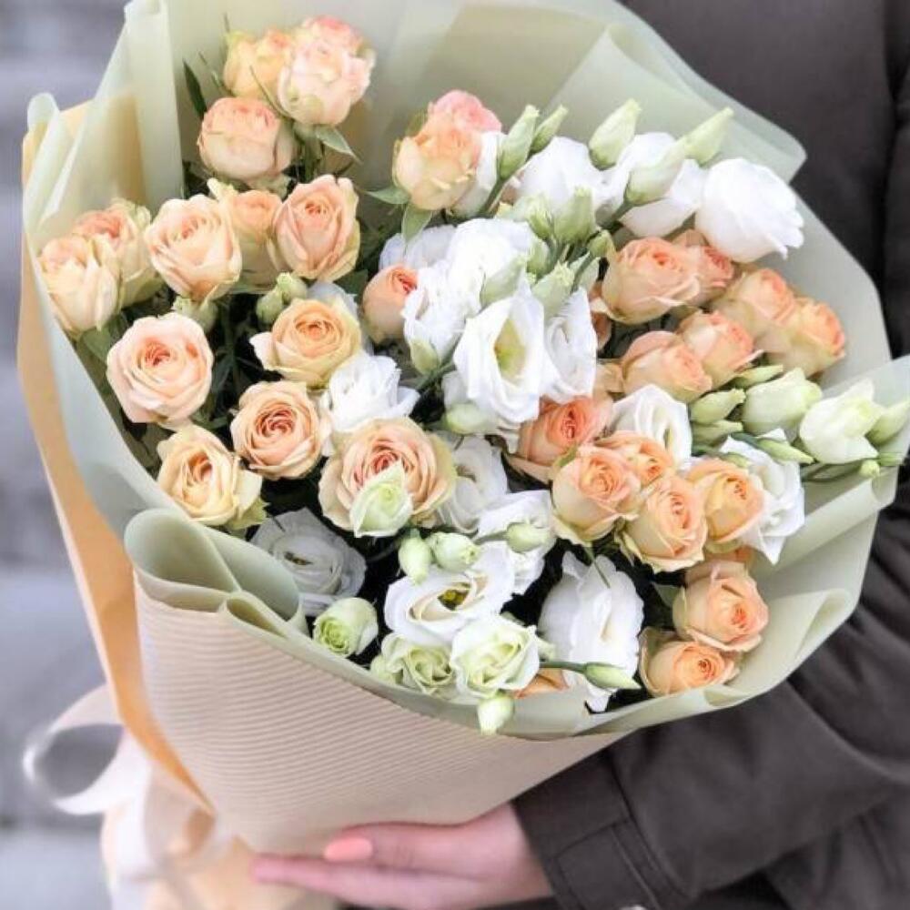 Букет из кустовых роз и лизиантуса