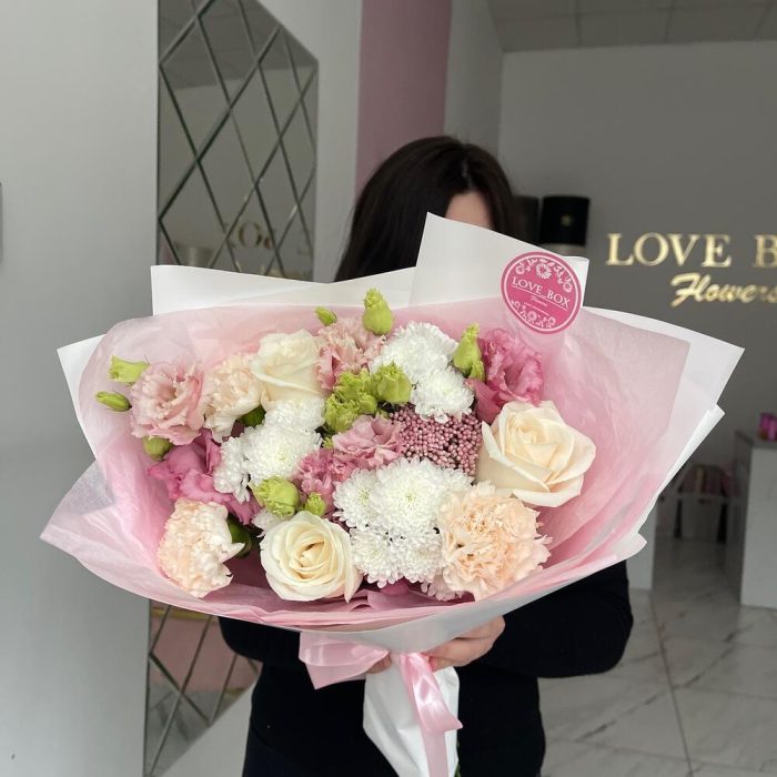 Категорий: Гвоздики, Кустовые розы, Лизиантусы, Розы, Хризантемы