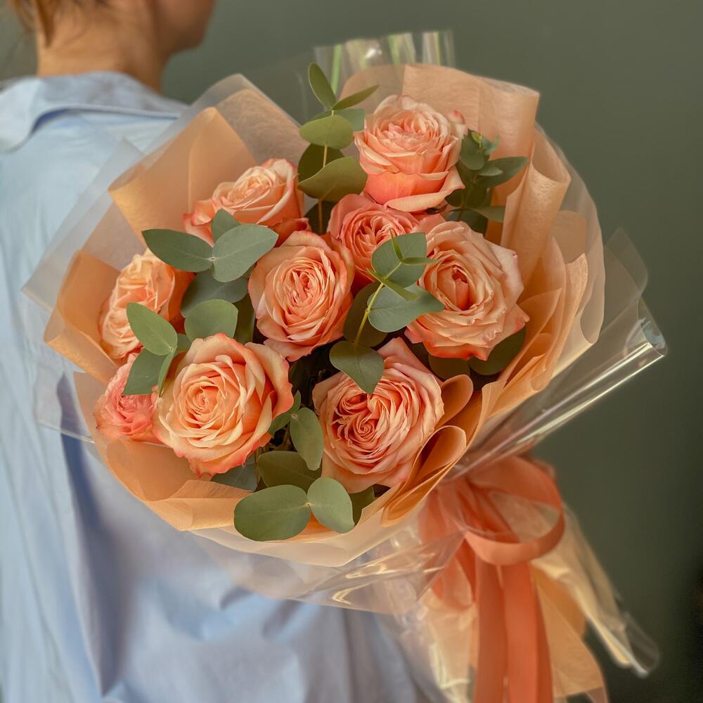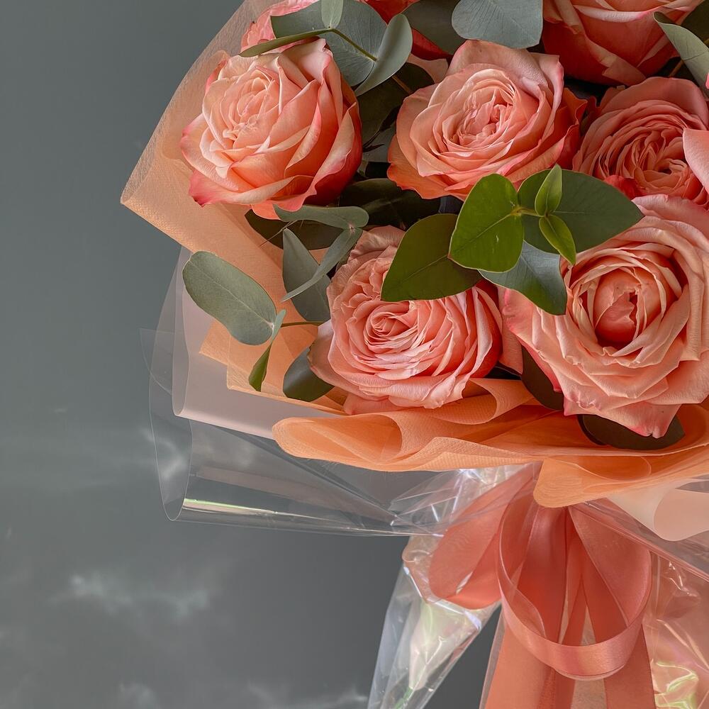 Букет из розовых пионов «Весенние пионы»(пионы,эвкалипт )
