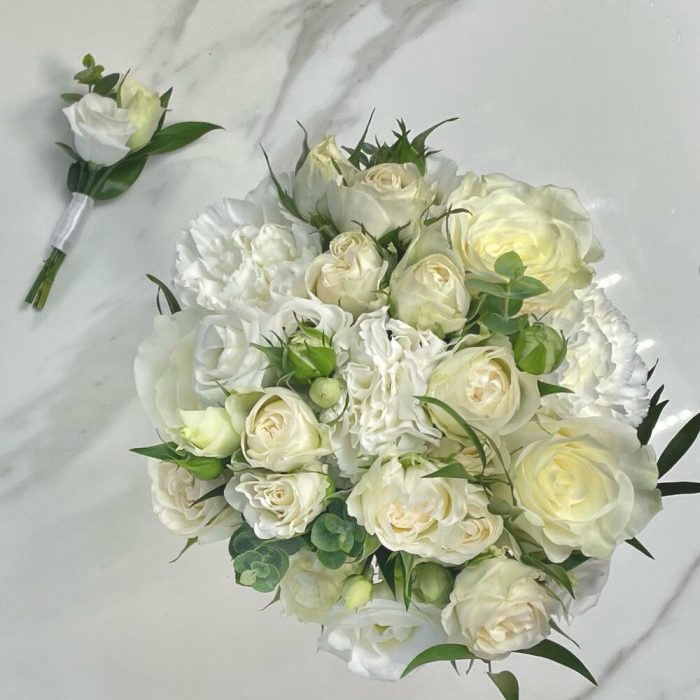 Миниатюрный свадебный букет + бутоньерка
