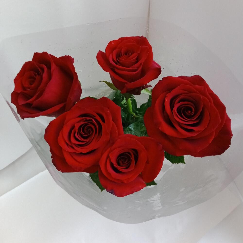 Роза красная 60 см – 5 шт.Прозрачная пленка – 1 шт.