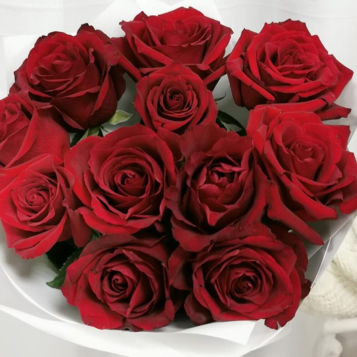Роза Эквадор – 11 шт.Лента атласная – 1 шт.Упаковка дизайнерская – 1 шт.